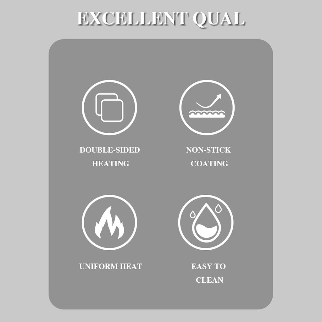 - Fast and Simple Cooking: Just plug in the power supply, turn it on, and then heat it for a few minutes. Double non-stick panel will provide even cooking.