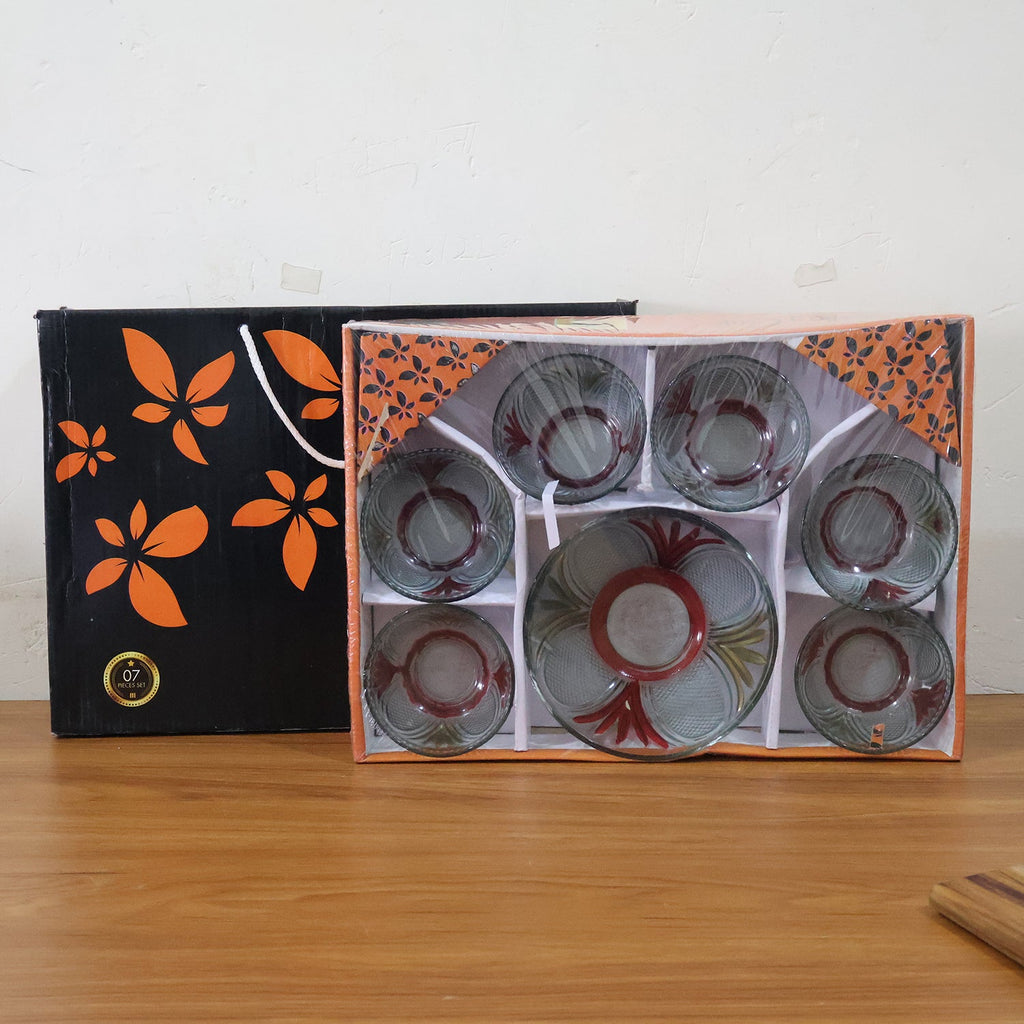 Multipurpose High Quality Glass bowl set of 7 pc, 1 Pc Big & 6 Pc medium Bowl Set is a perfect choice for healthy lifestyle. This product comes with 7 set bowl that is perfect for having soup/ice cream/yogurt/any kind food. This bowl is made by high quality Glass material which is BPA free and food safe.