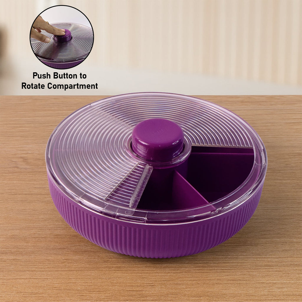Supermom Multipurpose Round Rotating Dry Fruit & Snack Storage Container with Transparent Lid and Divided Compartments – Elegant Purple Organizer Box for Dry Fruits, Snacks, Chocolates, and Serving